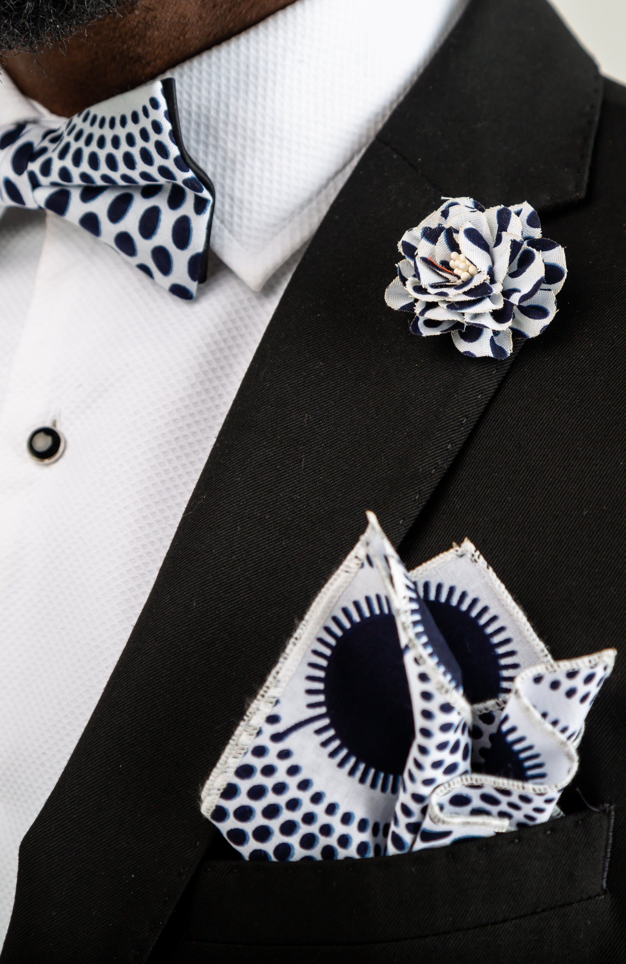 L'AVIYE bowtie set is designed to bring some African print flare to your suit jacket! Our African print is appealing and will be sure to catch everyone's eye. You may decide to rock each piece individually or combined, but it would definitely add a touch of class to your outfit.