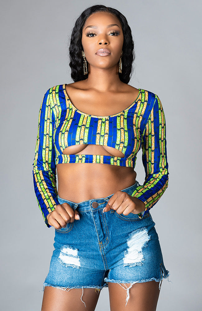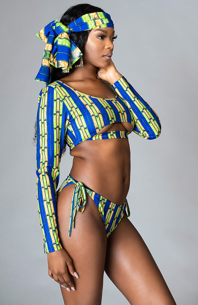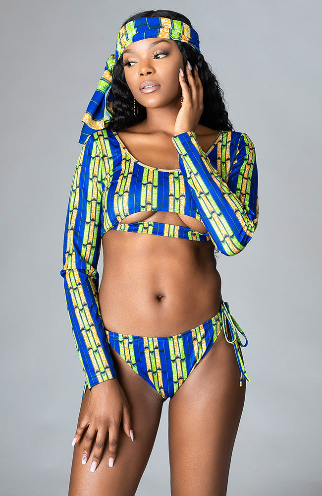 Comfy African print Long-sleeved Underboob Bikini swimsuit Top perfect for the transition between beach to party outfit. This alluringly designed African Swimwear Top is made with a vibrant Ankara fabric design. Featuring an underboob cut out crop top, this ankara bikini top will get you party ready this summer. Instantly transform this African swimwear from the poolside to a party attire with denim shorts or skirt.