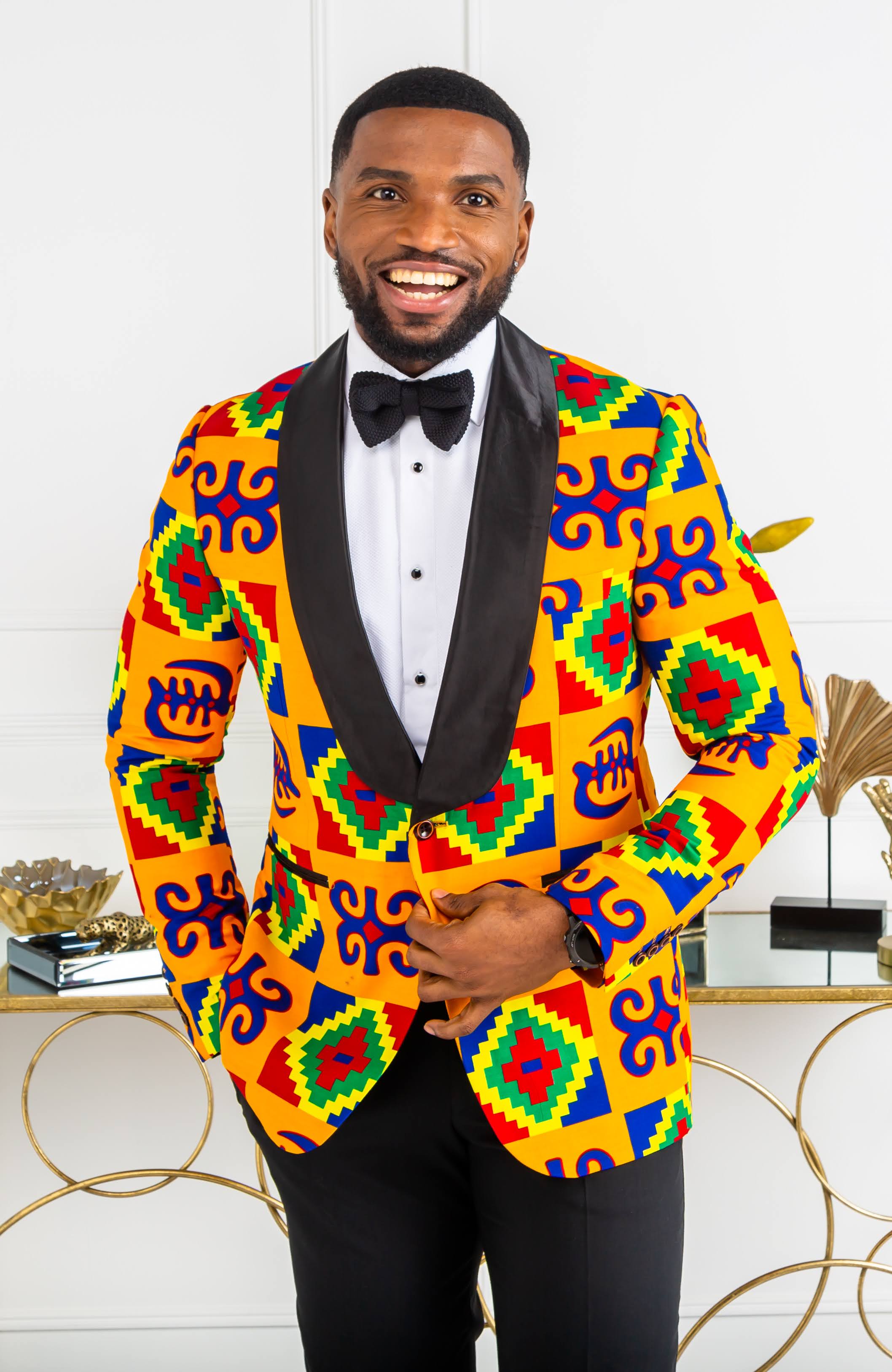 When it comes to sophisticated events, African Fashion brings the glam. Turn to this tailored fit L'AVIYE Men African Print blazer that sits against your frame for a neat outline. Our African print jacket features black shawl lapels for added elegance so you can be sure to stand out on the night.