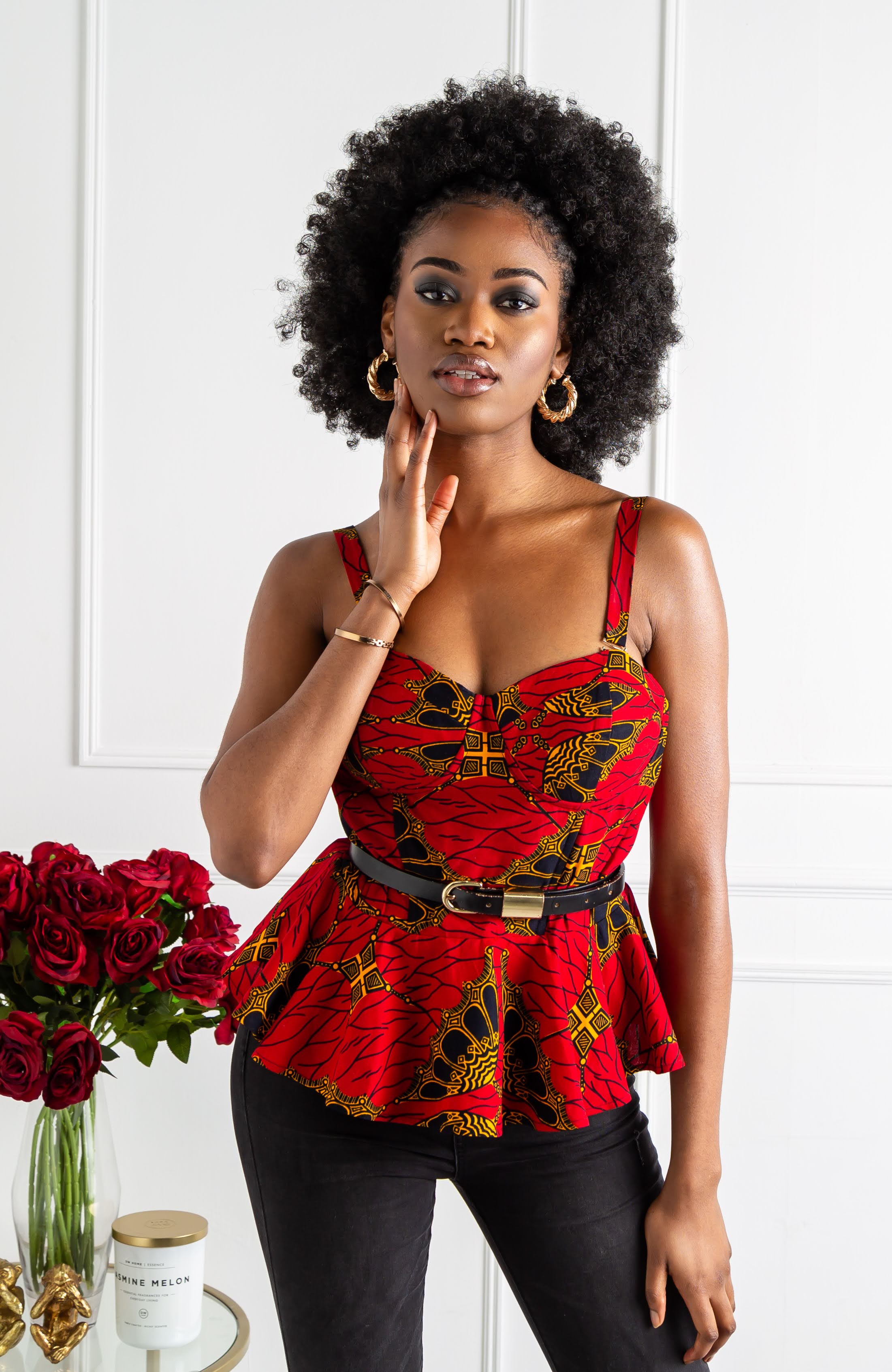 Our sexy African print peplum corset is cut from a bold Ankara wax fabric. This stylish African corset is cut to fit your silhouette perfectly and accentuate a slim waist. A feminine, sophisticated design, our ankara corset features proper corsetry boning for additional support, a detachable adjustable strap and a contrasting gold zipper to the back for easy on. Wear your African print peplum corset with denim and killer heels for a sexy sophisticated look.
