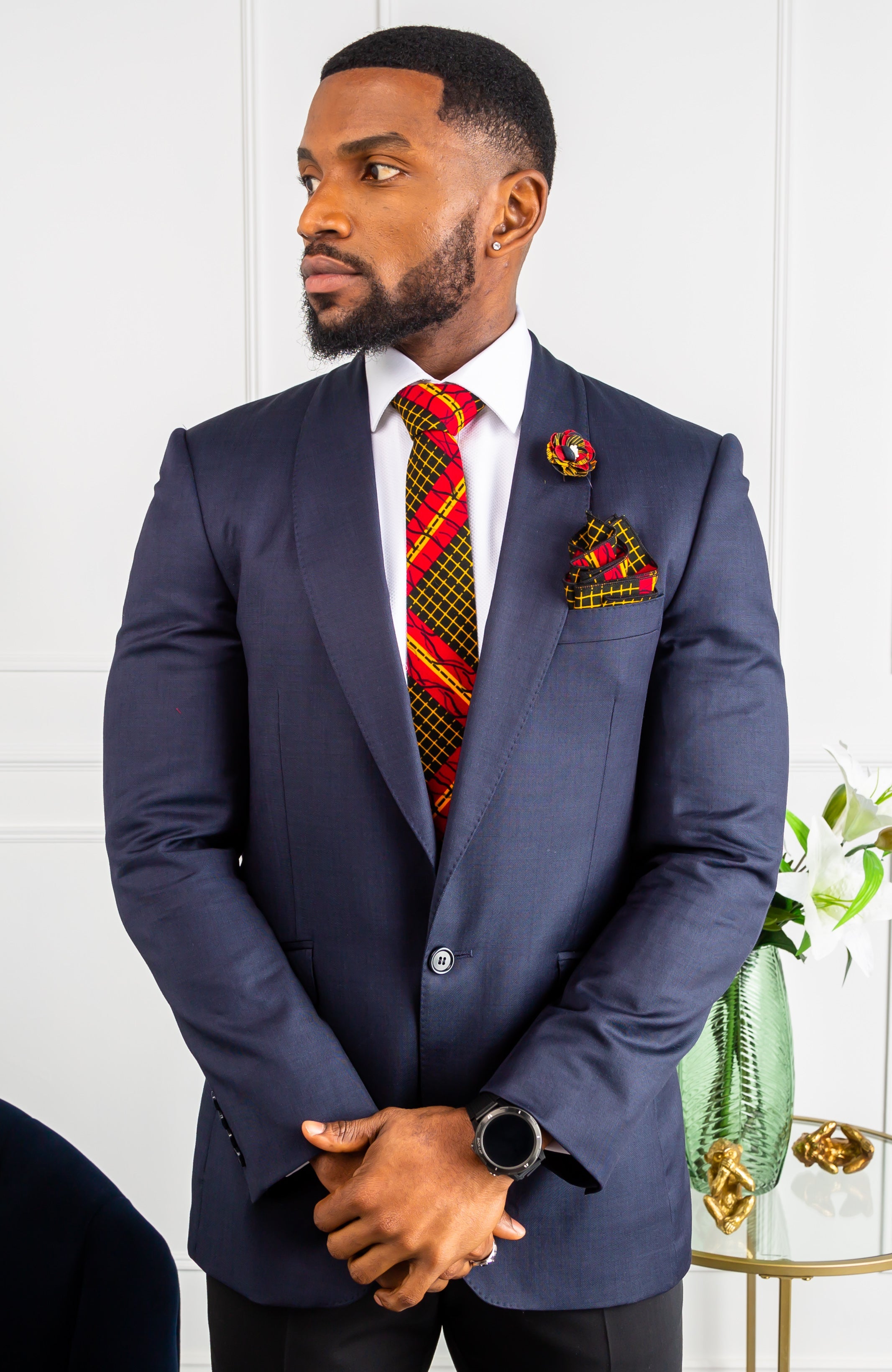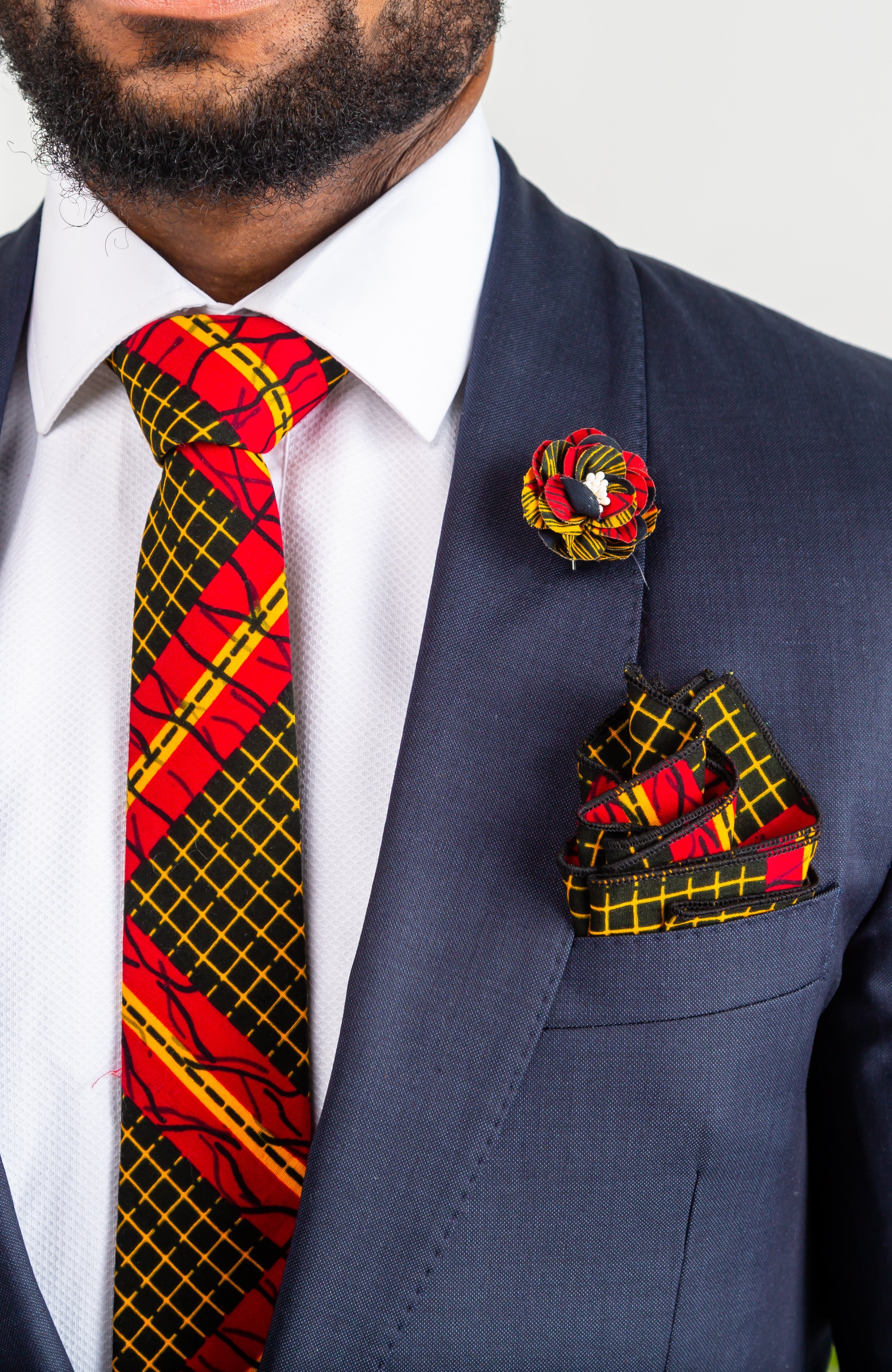 L'AVIYE Handmade African Print NeckTie Set. This wonderful five piece Ankara tie set will look great for any occasion. Made from 100% cotton fabric with the West African ankara wax print for a stylish and classy African vibe.