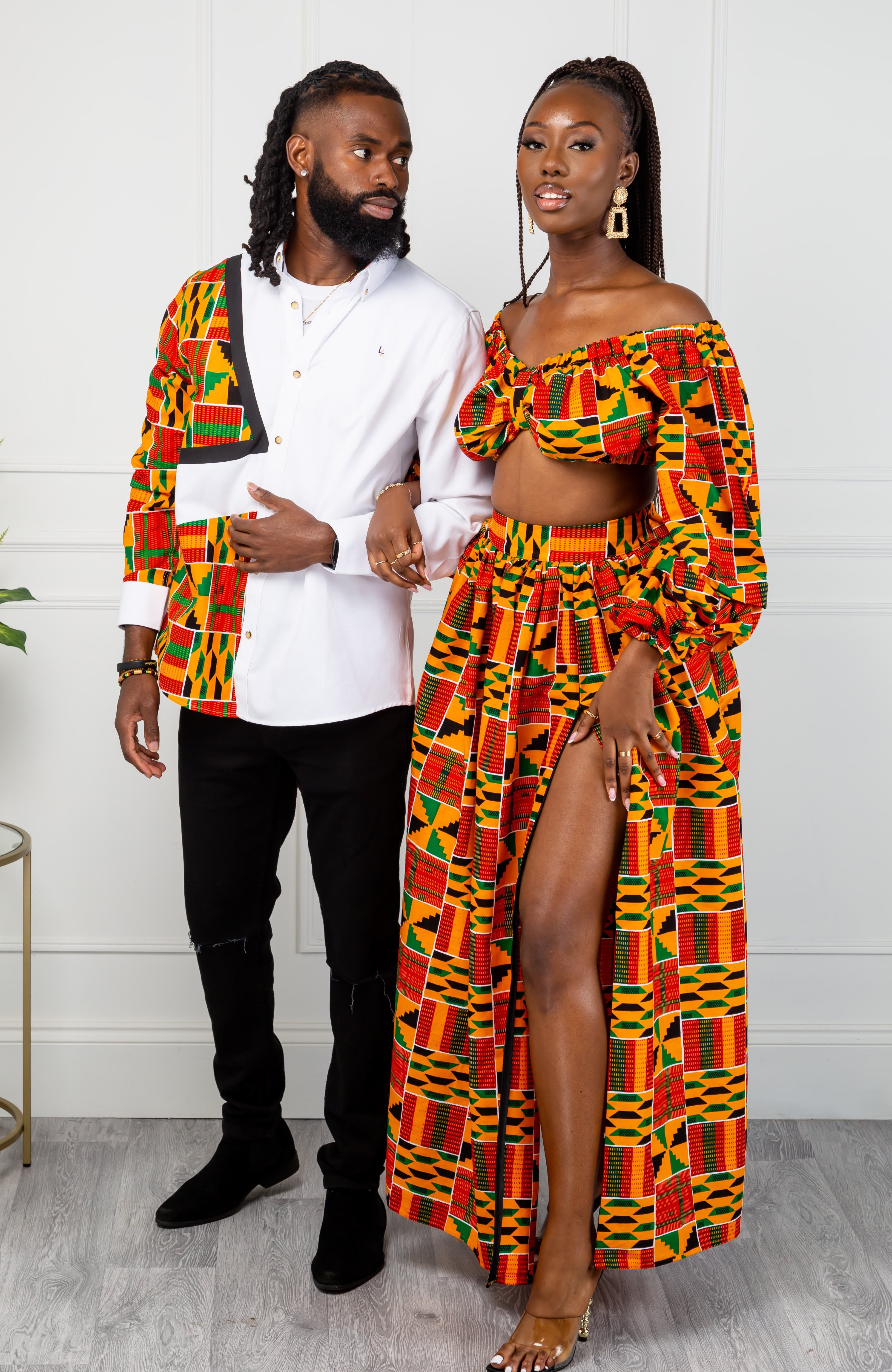 LAVIYE's gorgeous African print maxi skirt and long-sleeved crop top set are perfect all season round. Stylish cropped silhouette and puff off-shoulder sleeves perfectly match the African print maxi skirt with a hidden zipper slit. Pair with killer heels and a cute clutch for instant glam!