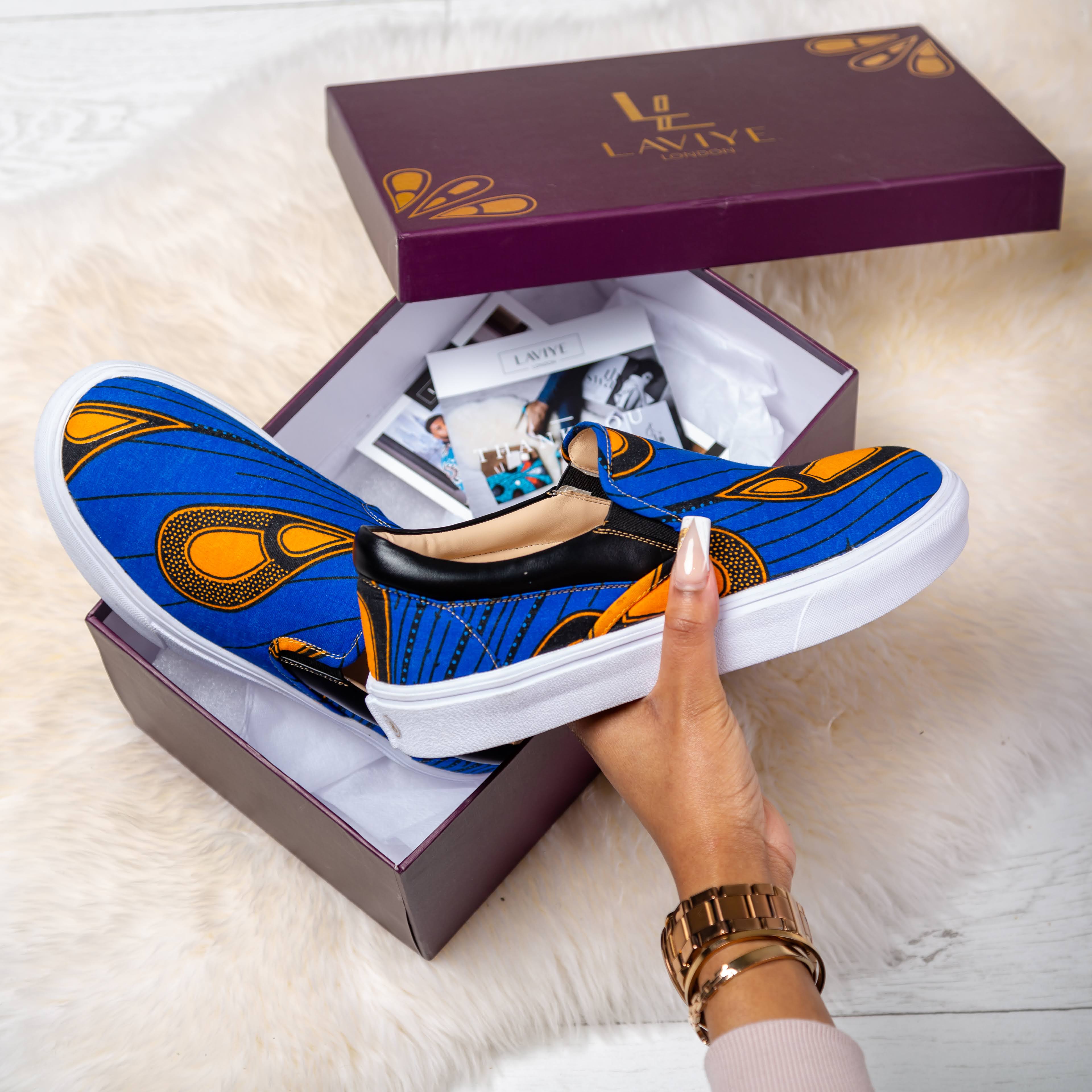 A gentleman's classic, these slip on African print sneakers will let everyone know you're a man of distinguished taste and not one to mess around when it comes to your daily drip. Our Ankara casual slip on pumps are designed and manufactured with authentic African print fabrics with an added faux black leather accent to complete its sleek look - designed to make you feel comfortable, fashionable and stylish wherever you go. Pair your with with slim-fit trousers, a button-down shirt and a blazer.