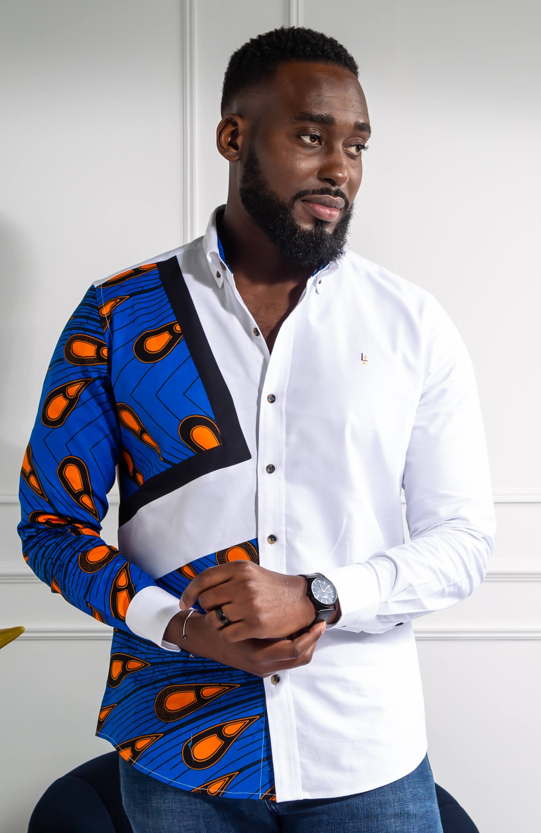 Our button-down Oxford ankara shirt treads the line between smart and casual, making it a great item for in-between days. Wear with jeans or smart trousers or make it suited to business settings with a contrasting jacket.