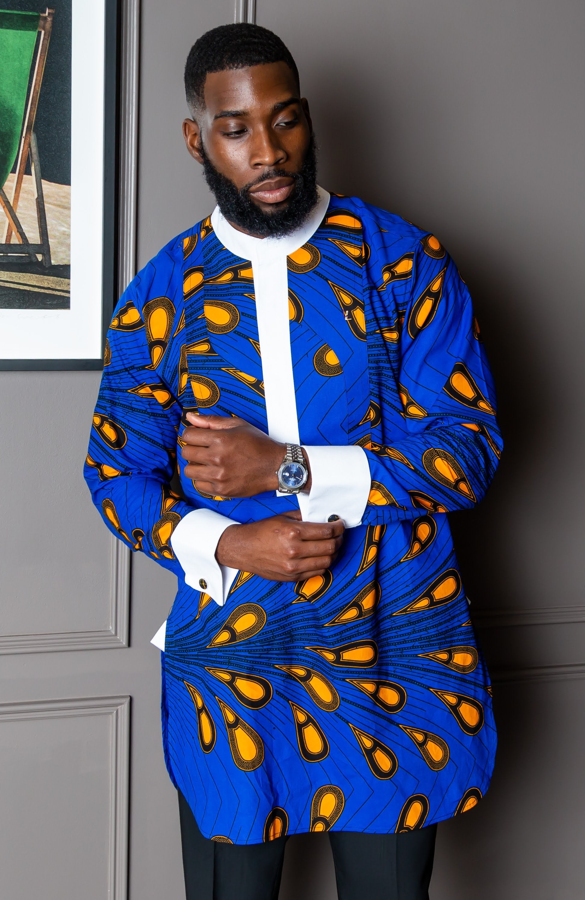 This Men's Grandad Collar Etibo Shirt is the perfect way to show your rich cultural heritage in the most fashionable way. Our Long Length African Print Shirt is cut from crisp, 100% African cotton and allows you complete versatility when it comes to styling. This Men's Grandad Collar Etibo Shirt will attract attention at any event. Whether you're attending a wedding, going out for an anniversary dinner or keeping things casual, this Long Length African Print Shirt is a staple you can always wear!