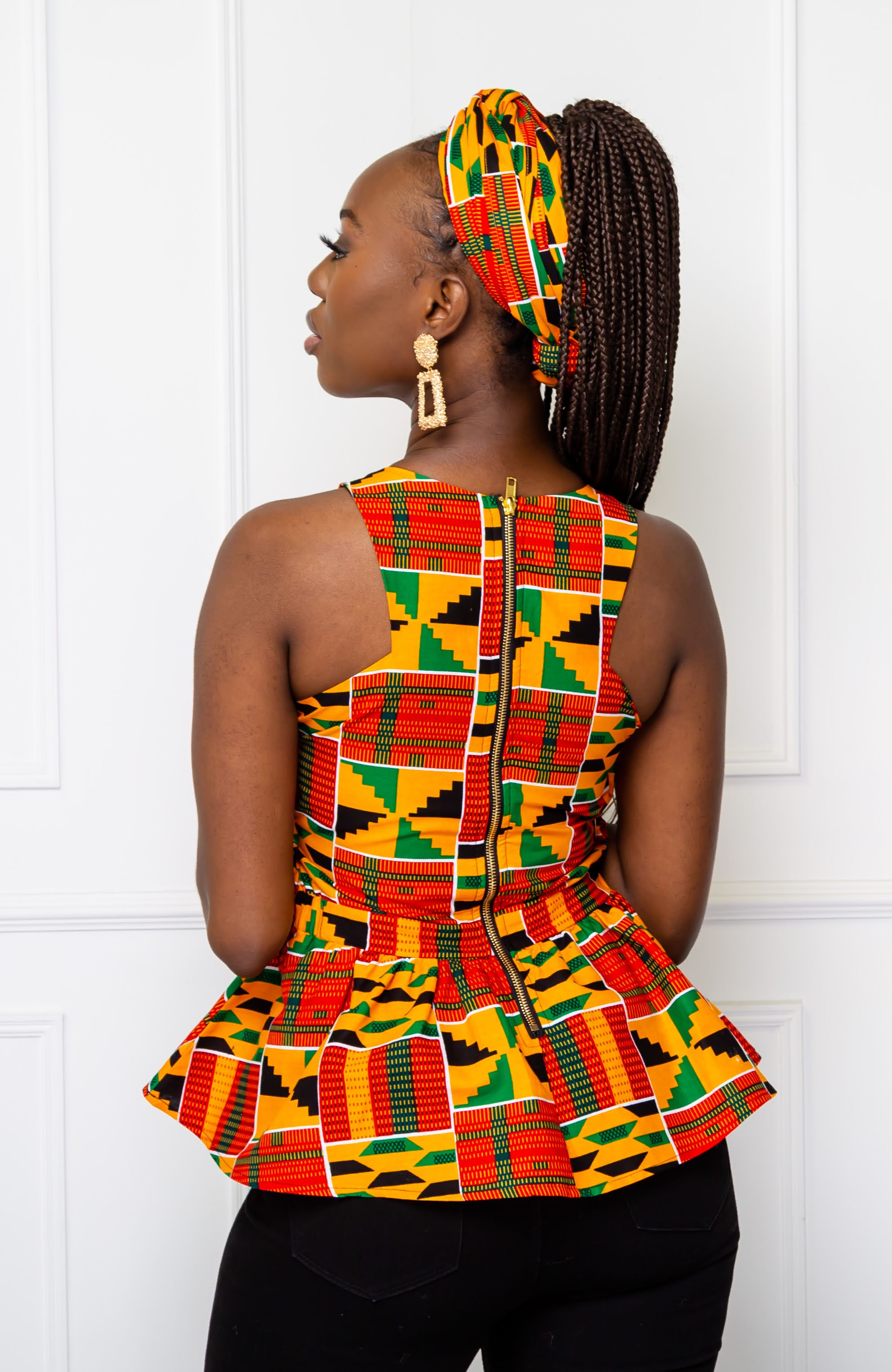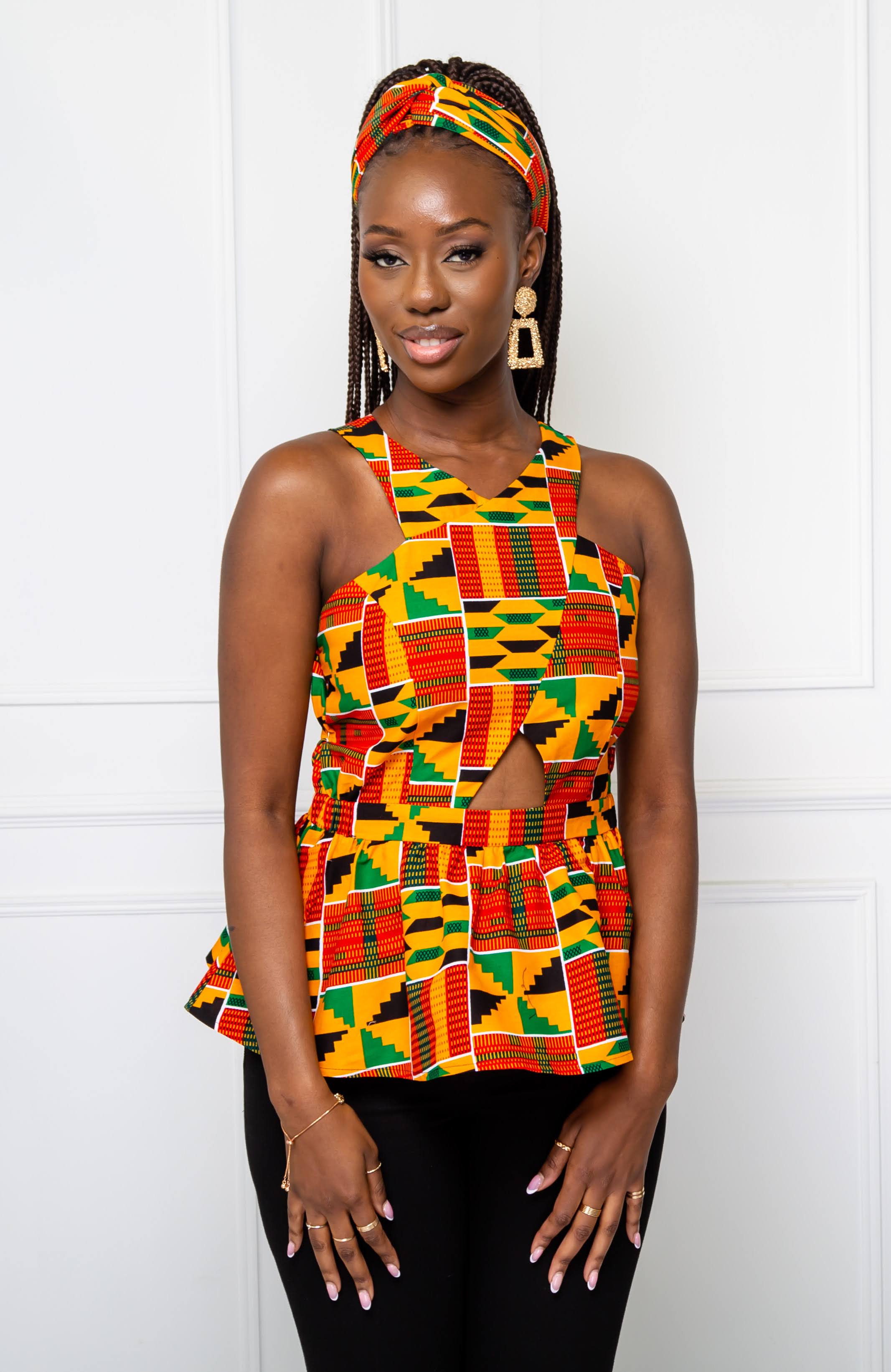 African Print Crossfront Peplum Top enables you to wear it the way you want when you want regardless of the global situation or climate Kente Top gives you the flexibility and variety no other top can.