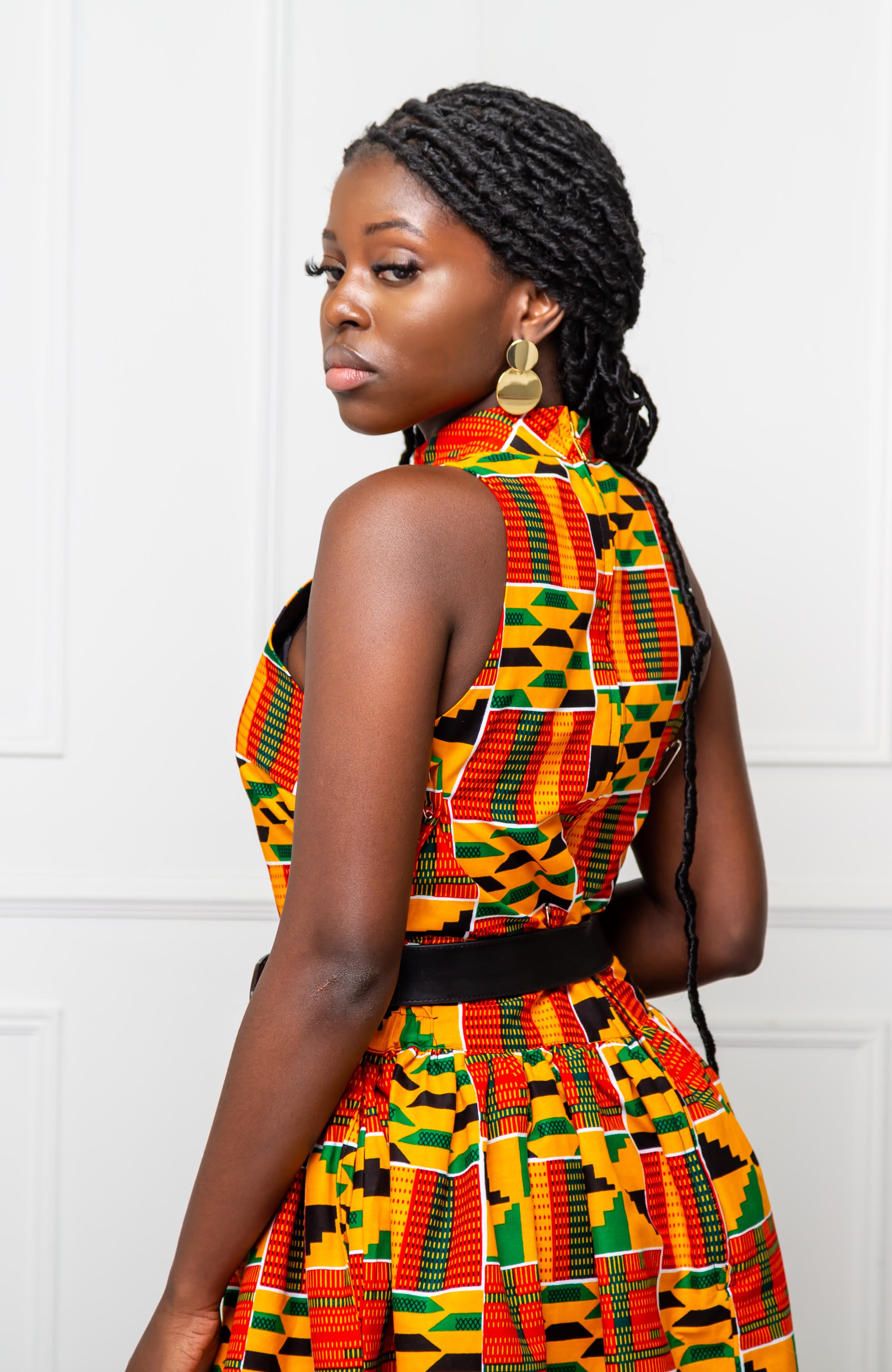 If you're searching for a new weekend go-to, then stop right here. Our sleeveless high-neck African print maxi dress is perfect for all your new season needs. Get ready for any weather with our African print turtleneck dress, either dress it down with some chunky trainers or keep it chic with your favourite pair of heels. Whatever your plans our turtleneck African dress needs a starring role in your wardrobe.