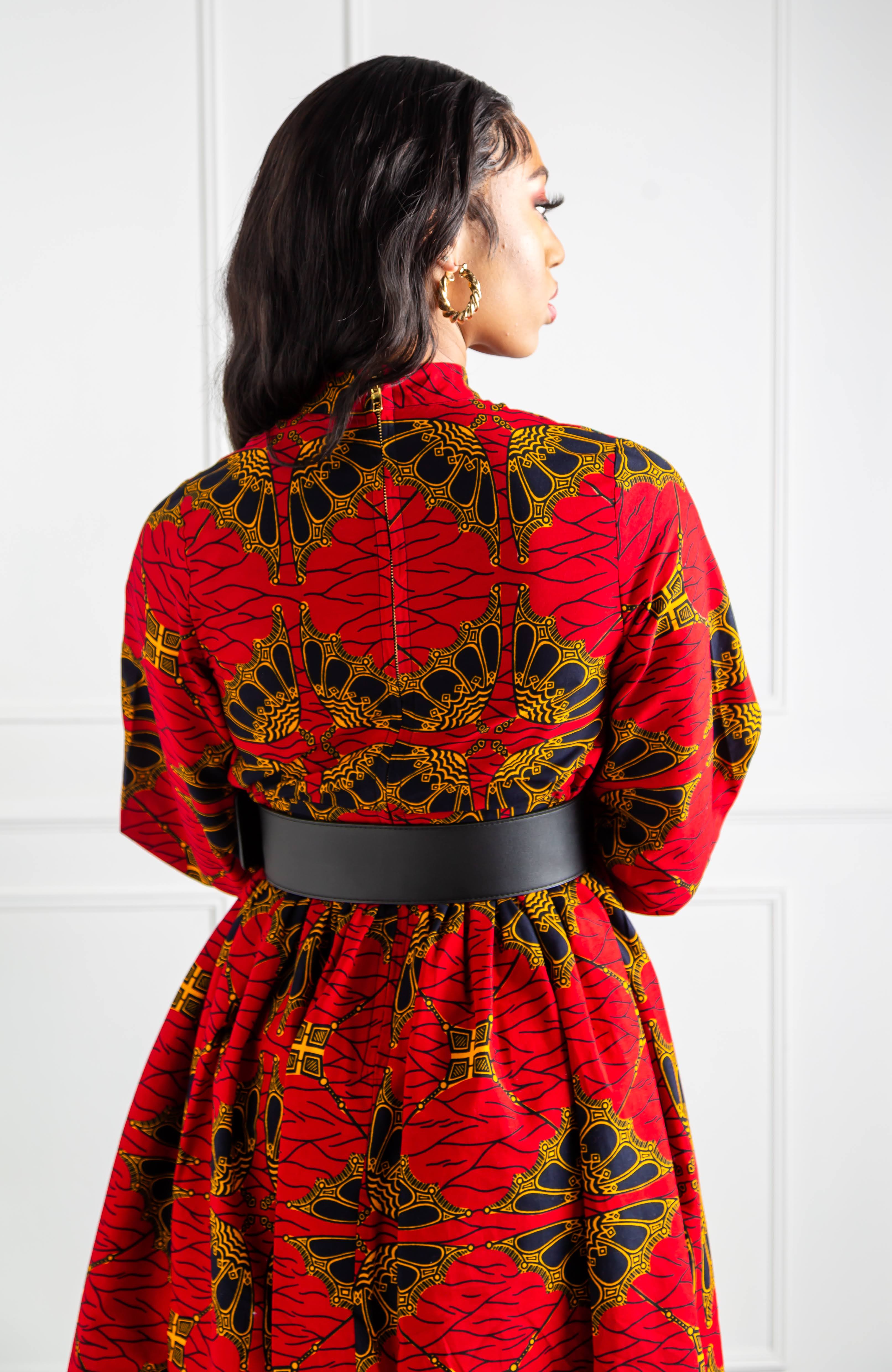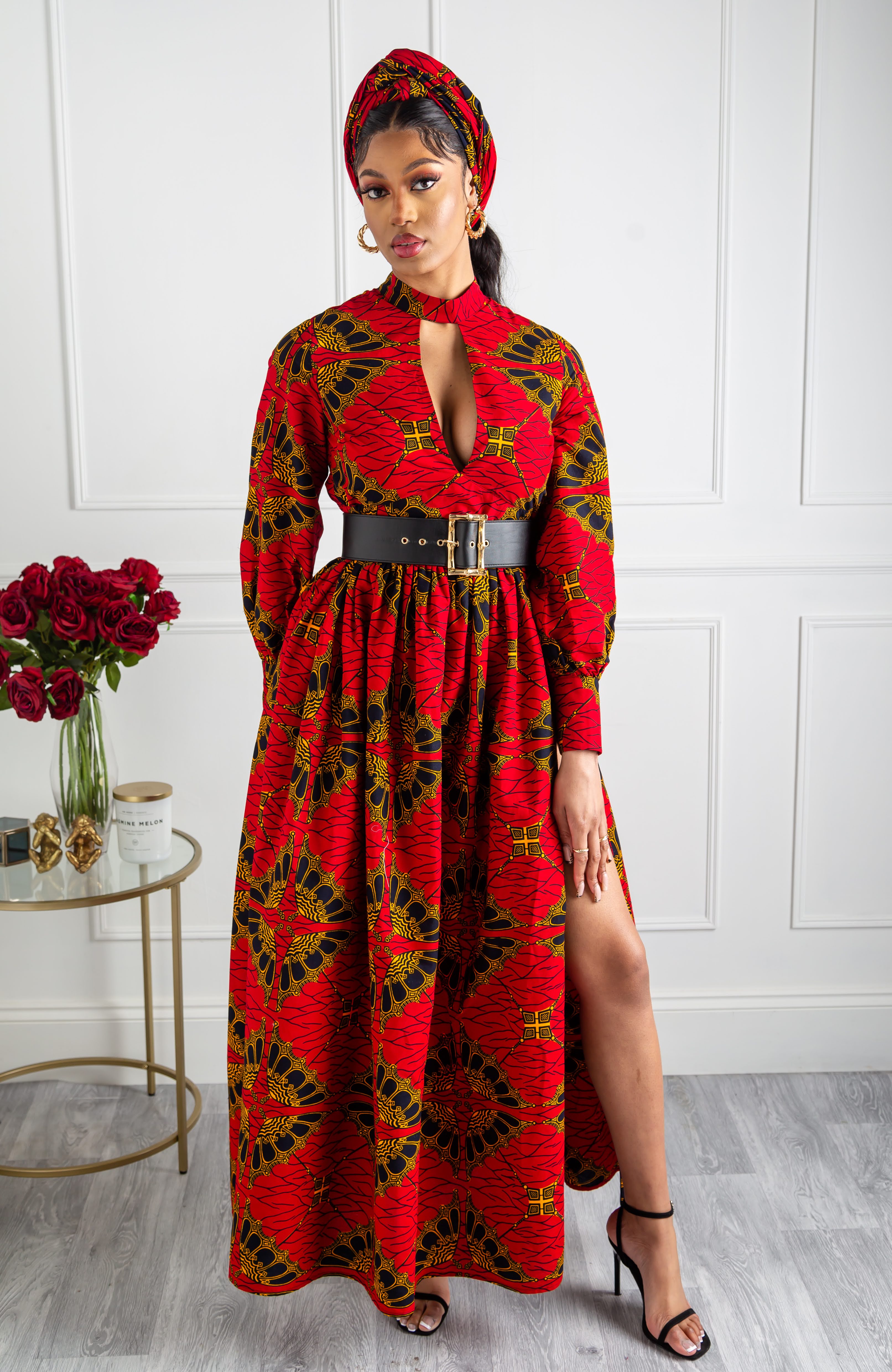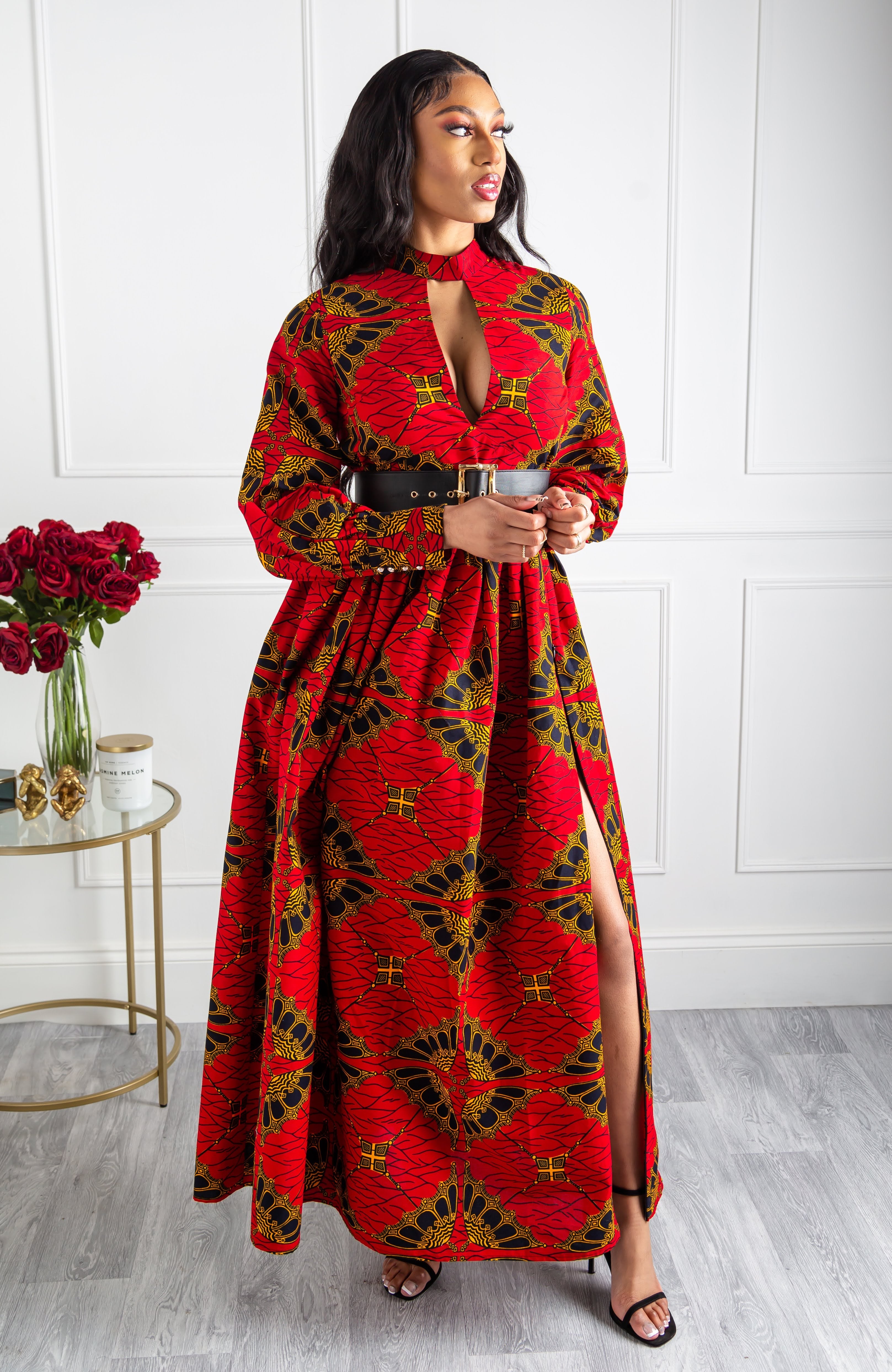 Turtleneck Plunge African Print Maxi Dress | Long Sleeved Maxi Dress - CORDELIA