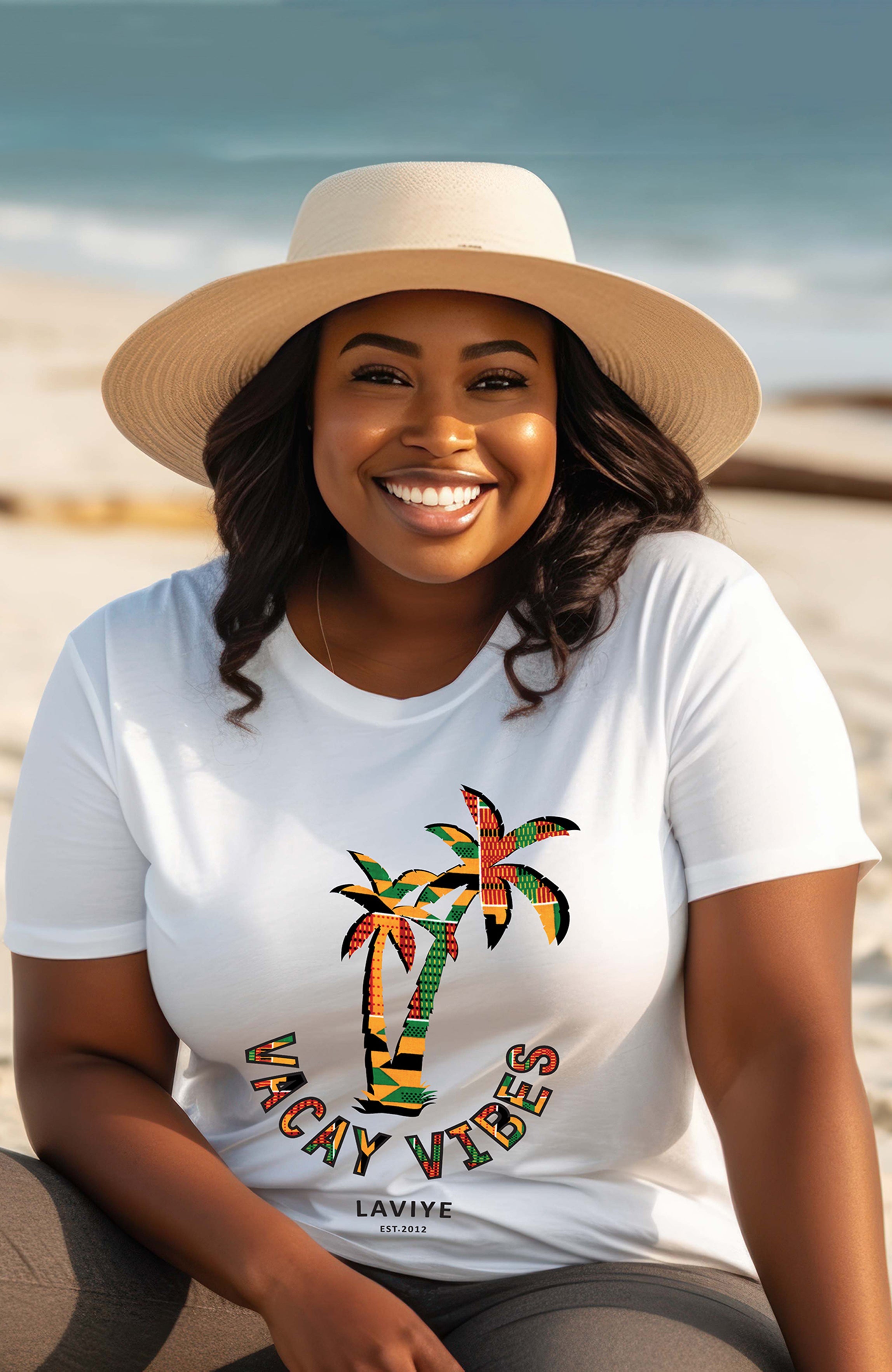 Introducing your new favourite t-shirt, exclusive to LAVIYE. Our limited edition 'African Print Vaycay Vibes T-Shirt' is the classic tee that every wardrobe needs. Represent your culture with this Unisex African Print Graphic T-shirt.